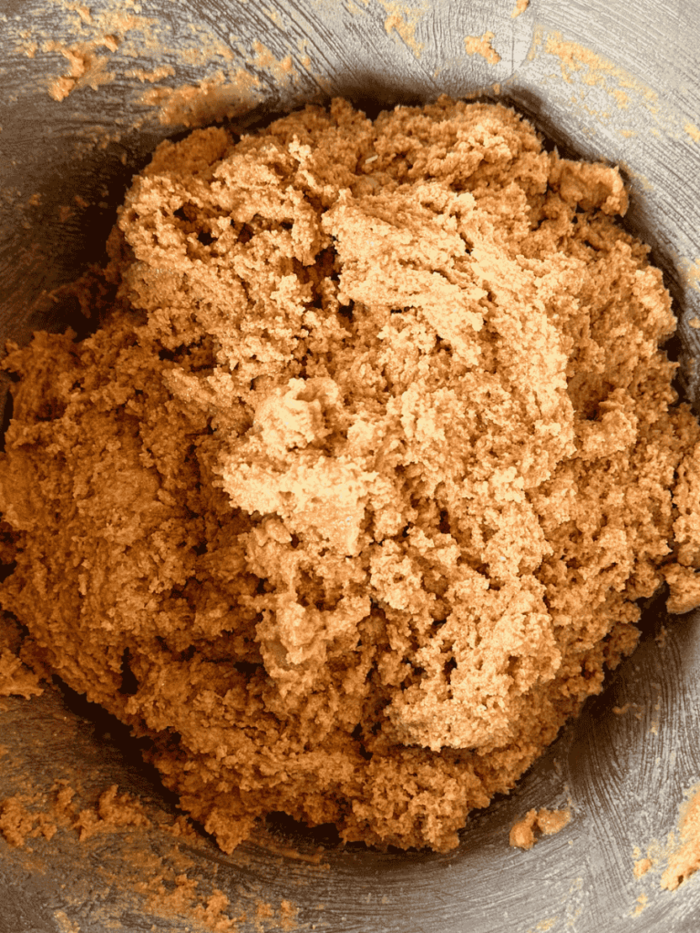 - In your mixer, beat together the brown sugar and butter until light and fluffy.